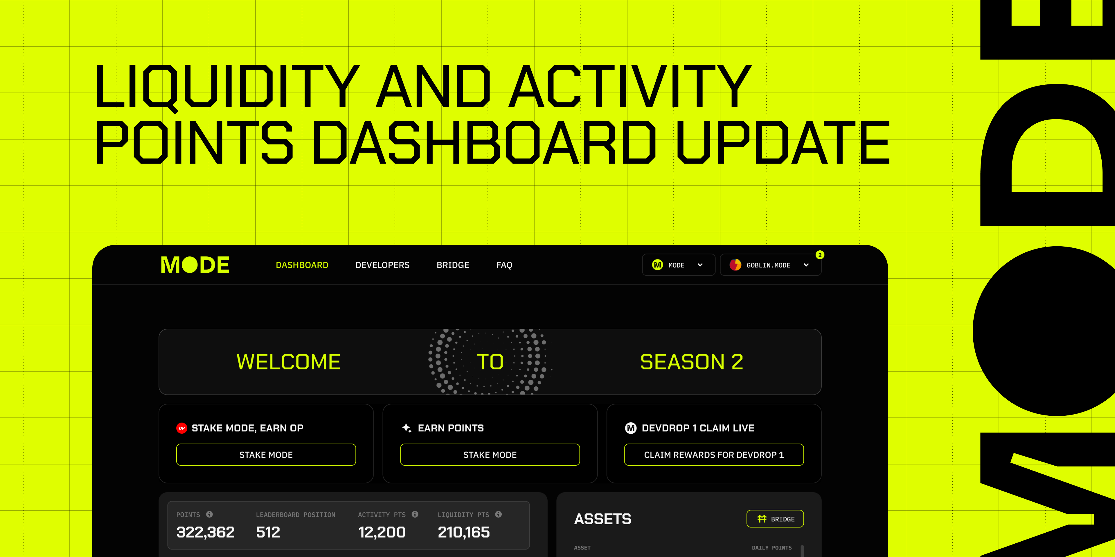 Earn a share of 500M Mode tokens in Season 2 for contributing to growing the Mode ecosystem.